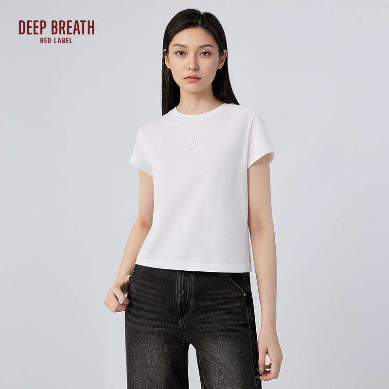 • 深呼吸红标【航海家】新款简约百搭素色圆领纯棉短袖T恤女D30007
