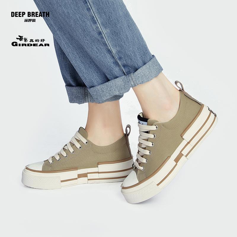 • DEEP BREATH深呼吸女鞋 厚底帆布低帮绑带休闲鞋女帆布鞋AX12179