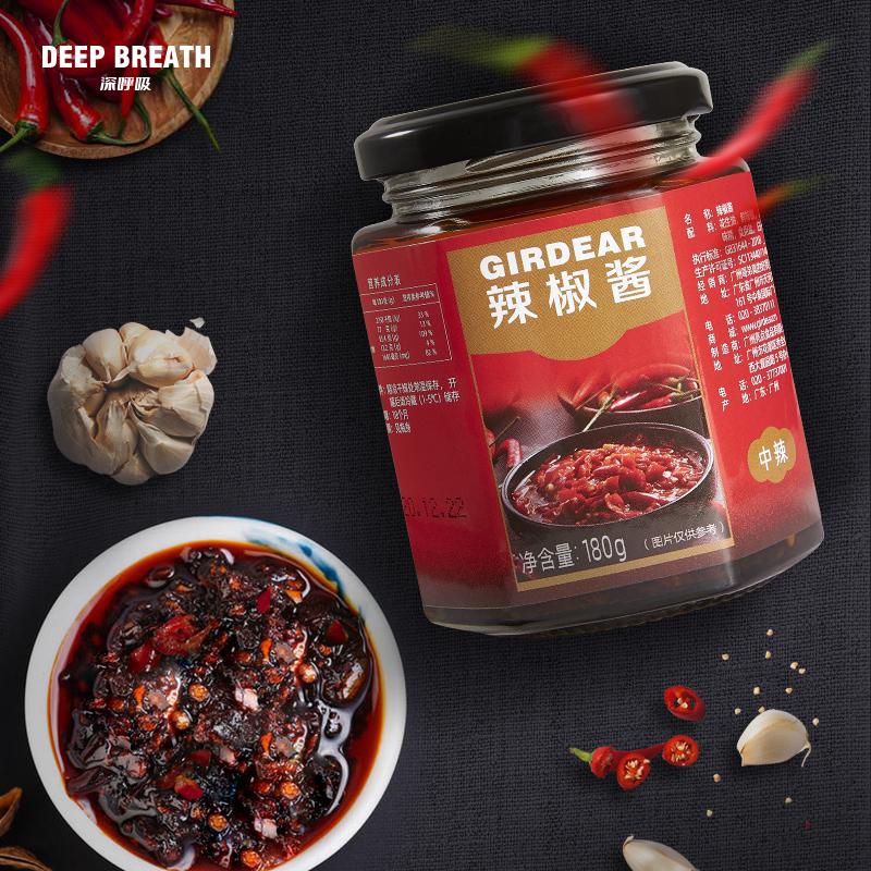 DEEP BREATH深呼吸 特辣鲜香下饭 微辣豆豉辣椒酱 拌饭酱蘸料 调味酱小瓶装180g AR12001