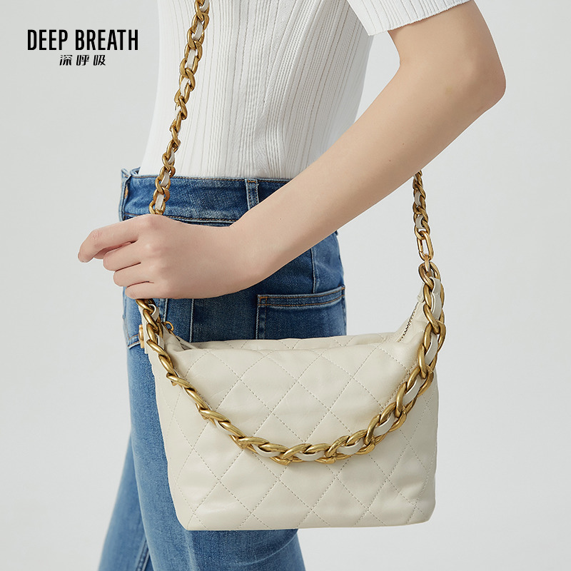 DEEP BREATH深呼吸女包 菱格布面充棉休闲腋下包单肩斜挎手提包小号AB10197