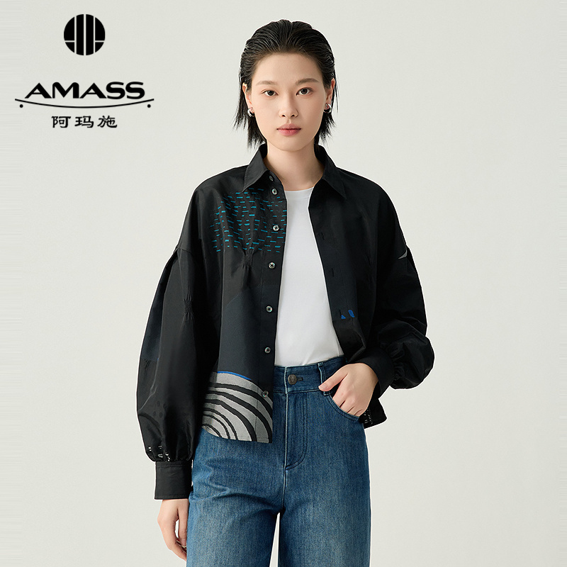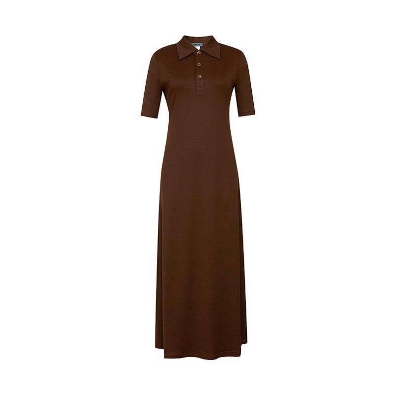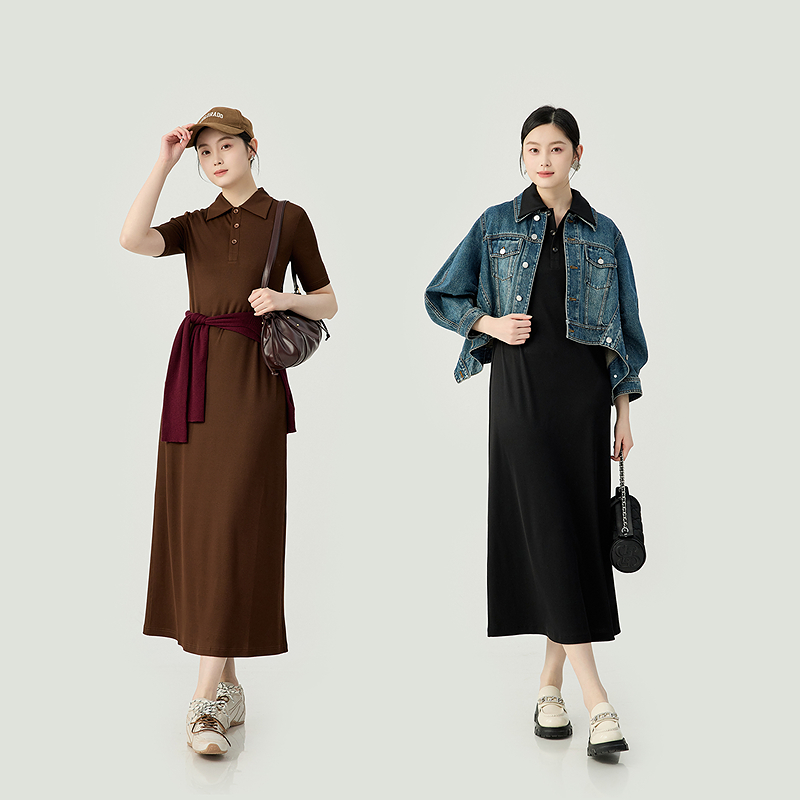 阿玛施AMASS 气质复古百搭翻领纽扣收腰短袖连衣长裙550030