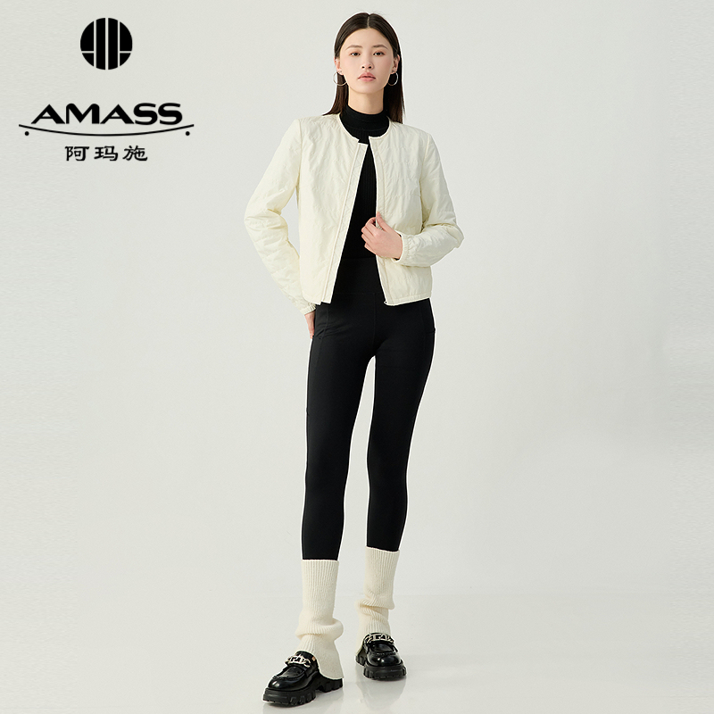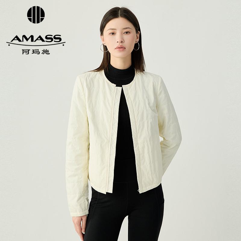 阿玛施AMASS 百搭简约横条绗缝棉服外套540048