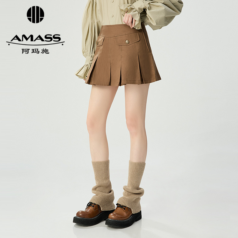 阿玛施AMASS 复古学院风中腰打褶工装风短裙520005