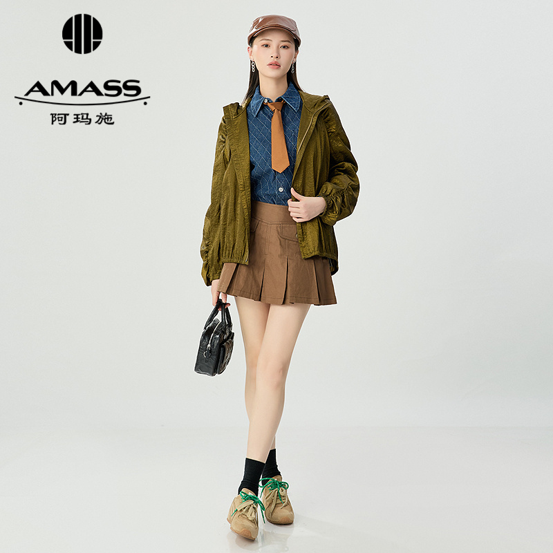 阿玛施AMASS 插肩袖宽松造型轻量缩褶休闲外套540001