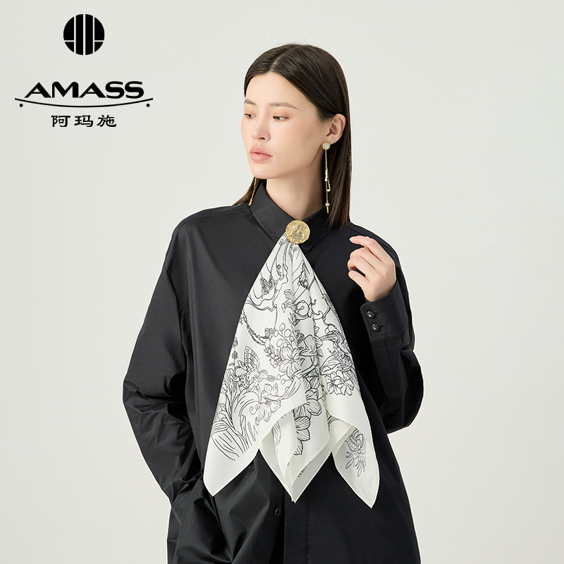 阿玛施AMASS 质感"自由诗人"架子鼓图案桑蚕丝方形丝巾580016