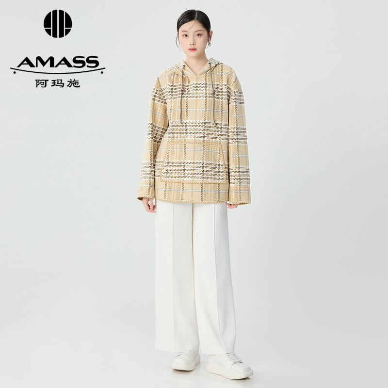 阿玛施AMASS 质感格纹羊毛宽松套头连帽卫衣5300898