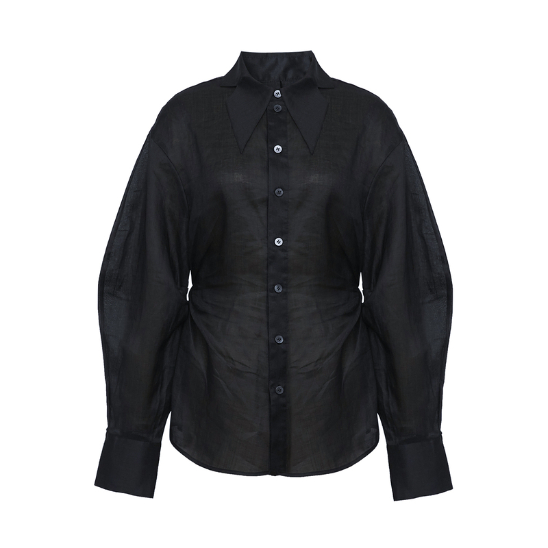 阿玛施AMASS 收腰设计透视黑色麻料衬衫5301082