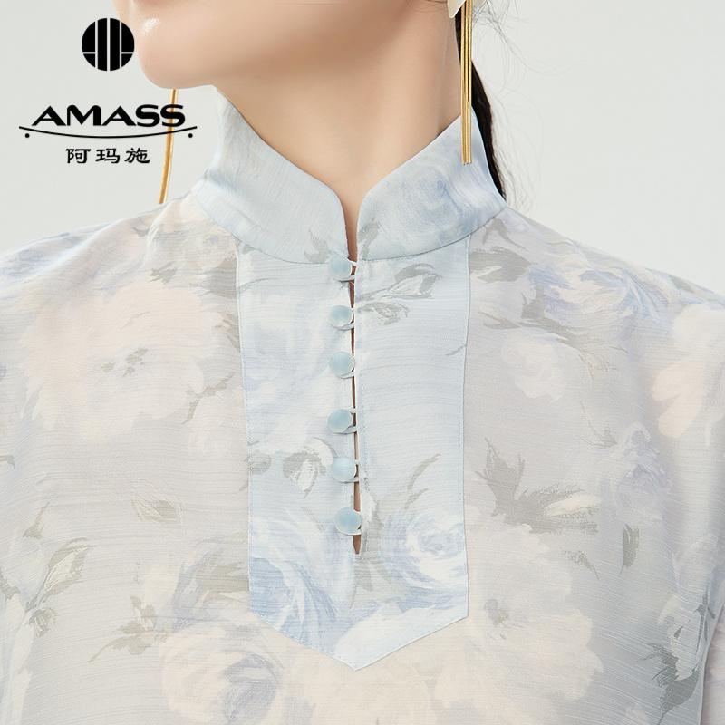 阿玛施AMASS 薄荷曼波风轻盈新中式衬衫5301045