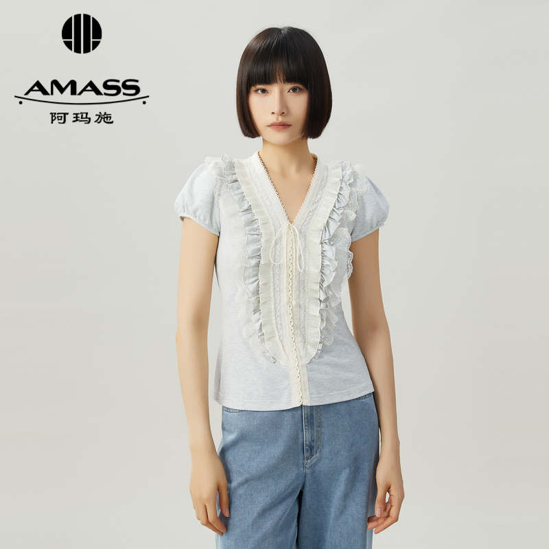 阿玛施AMASS 简约口袋字母长袖白衬衣5301080