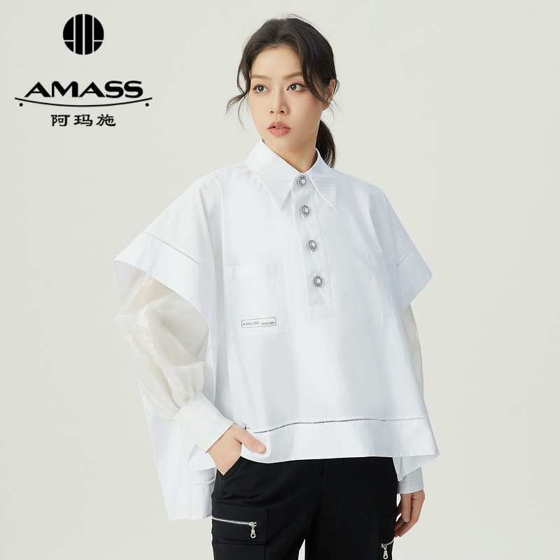 阿玛施AMASS 个销拼接设计酷帅风休闲廓形衬衫5300953