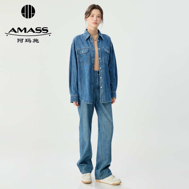 阿玛施AMASS 休闲复古百搭牛仔衬衫5300971