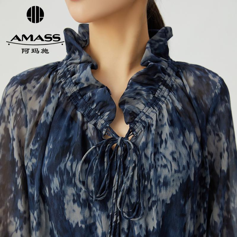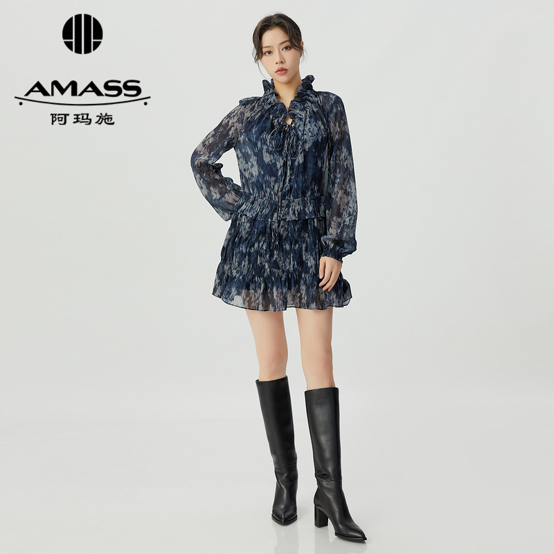 阿玛施AMASS新款复古法式荷叶边直身型飘逸短款浪漫洋装5500524
