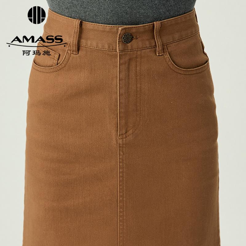 阿玛施AMASS 新款女装百搭显瘦休闲牛仔棉质鱼尾半身中长裙5200420