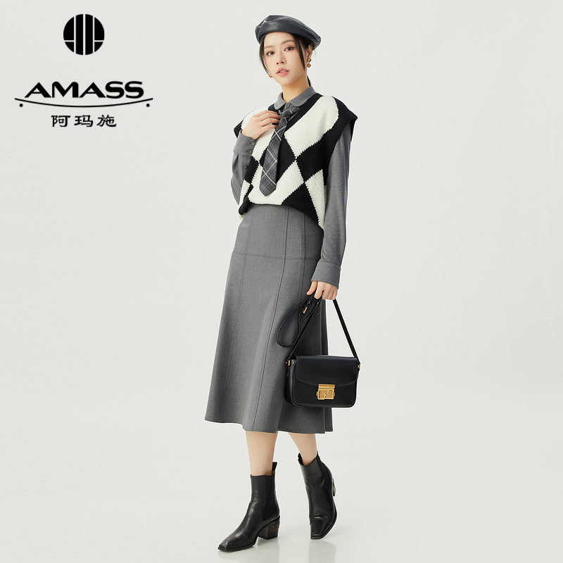 阿玛施AMASS 减龄学院风菱格V领针织马甲5399665