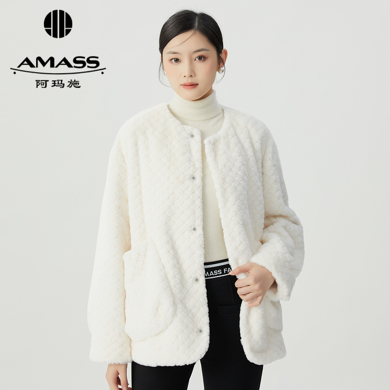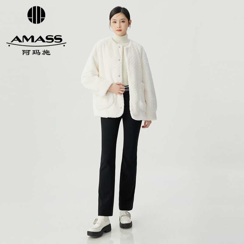 阿玛施AMASS 新款精致百搭白月光压剪喷花工艺毛绒夹克外套5400830