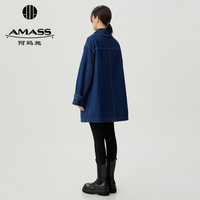 阿玛施AMASS秋冬新款排扣双口袋丹宁廓形牛仔棉衣5400845
