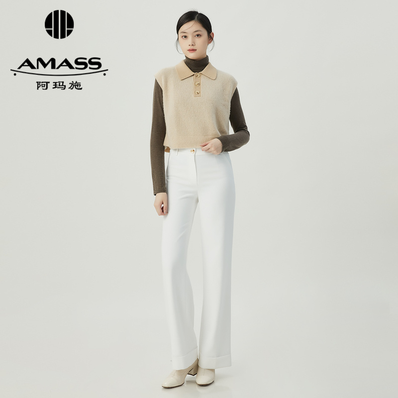 阿玛施AMASS 简约polo领纯色休闲无袖羊绒针织5399636