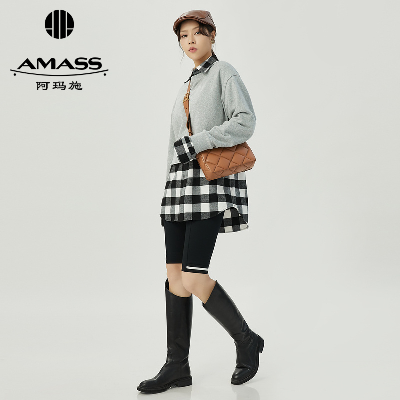 阿玛施AMASS新款中高腰拼接条纹修身中裤5100429