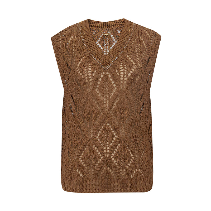 丽米儿limil 质感钉珠镂空菱格针织马甲9399064