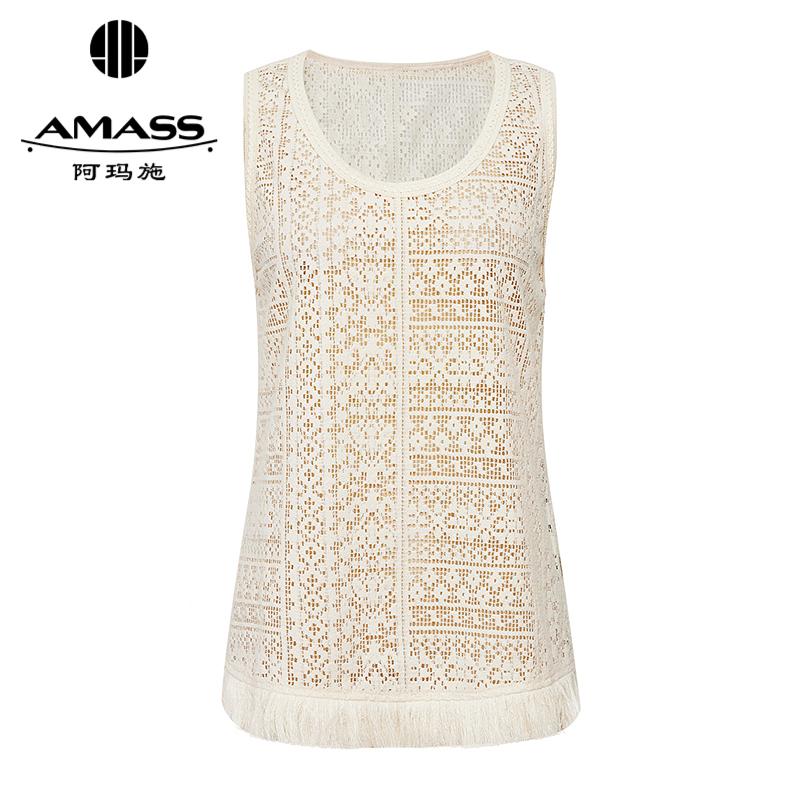 阿玛施AMASS 舒适随意感镂空下摆流苏背心式罩衫上衣530049