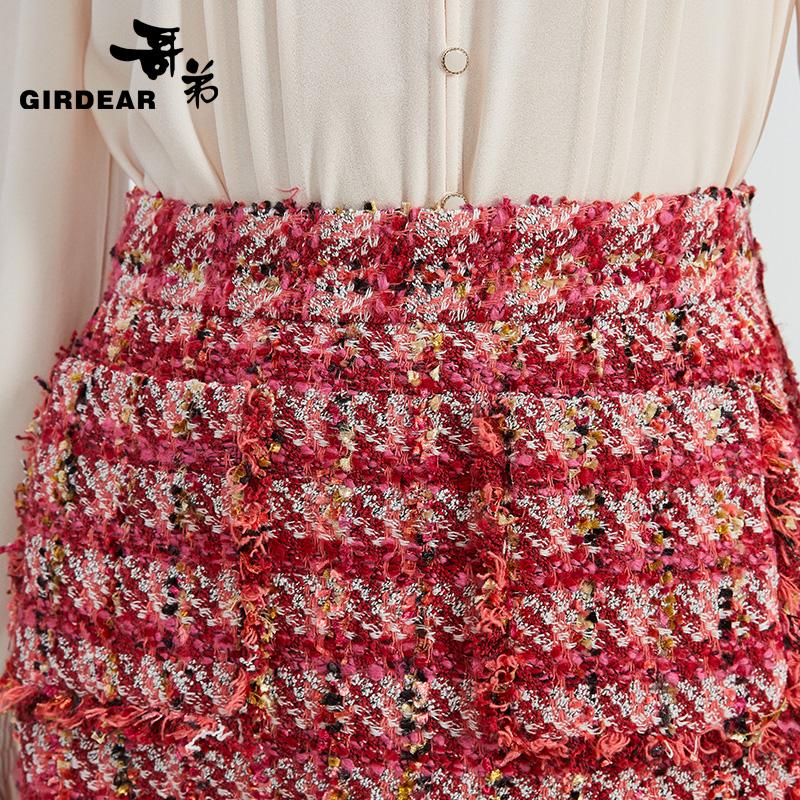 哥弟 气质红格睫毛边小香半裙1200183-7K