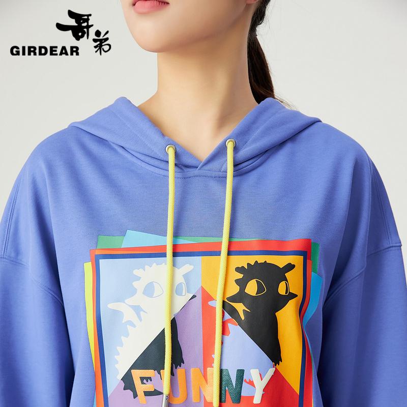 哥弟 宽松百搭数码印花连帽卫衣1300781