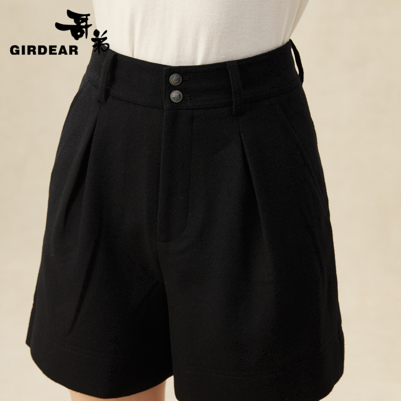 哥弟 高腰两粒扣百搭羊毛短裤1100440