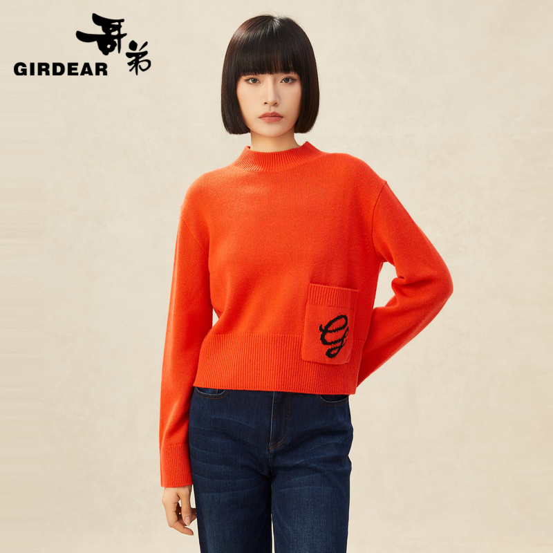 哥弟 呼吸兔兔圆领针织羊绒套头衫1399565