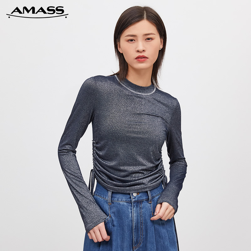 AMASS阿玛施 抽绳收腰烟管领金银丝长袖5300669