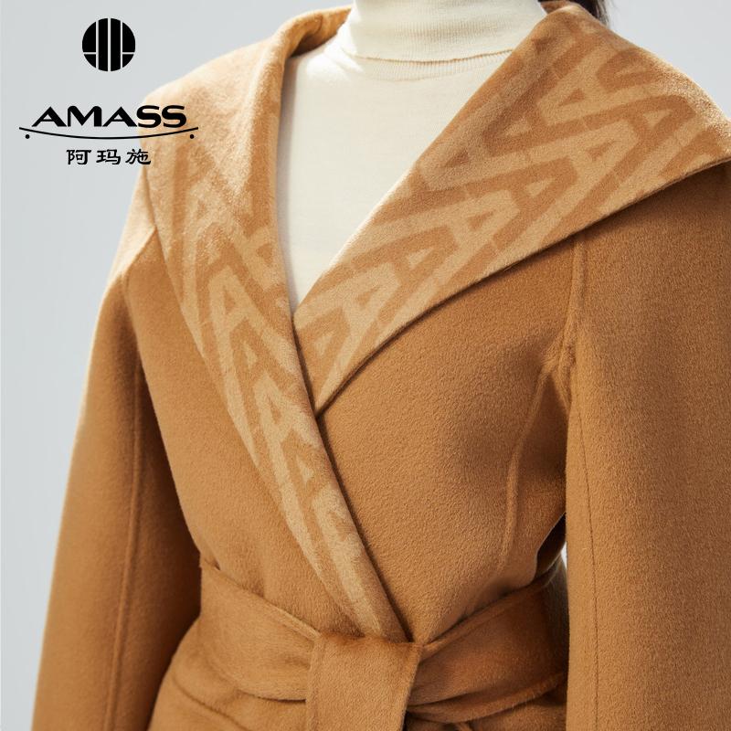 AMASS阿玛施 大翻领设计中长款双面呢 附腰带5400553-1