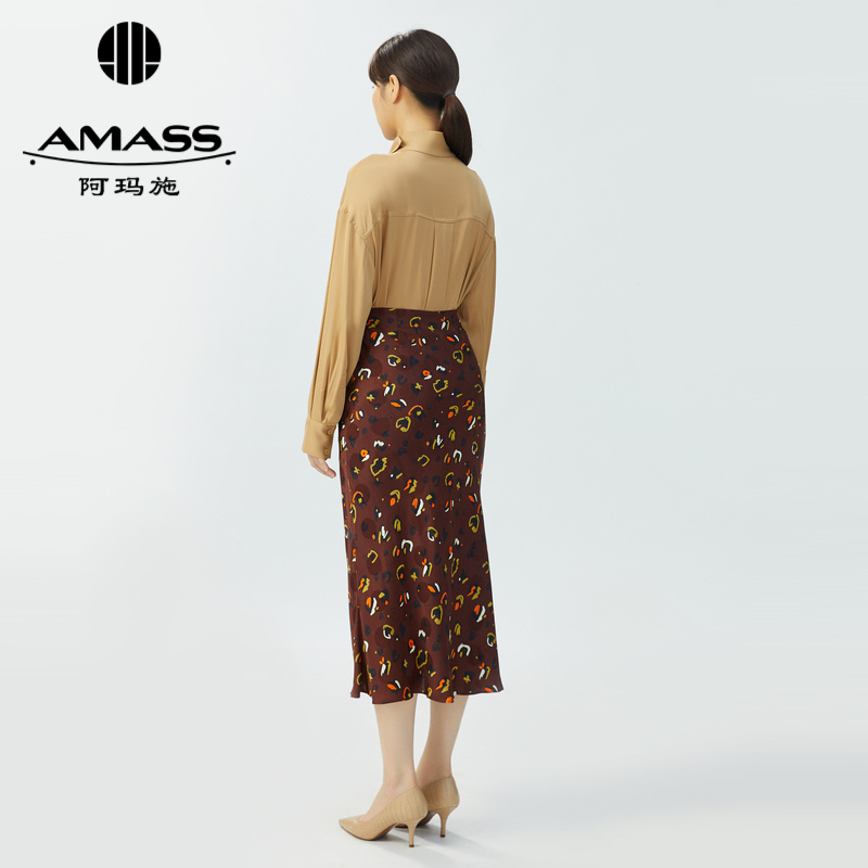 AMASS阿玛施 优雅双口袋宽松桑蚕丝长袖衬衫 5300799-2