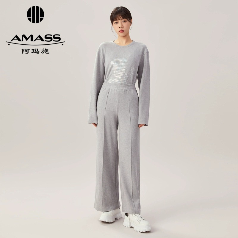 AMASS阿玛施 休闲松紧腰直筒长裤显瘦5100360-2