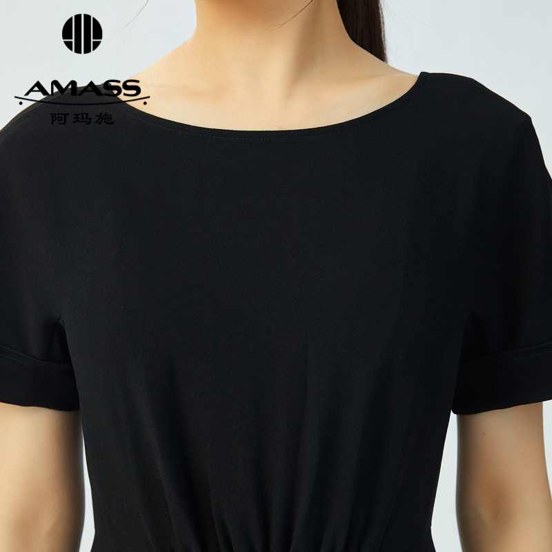 AMASS阿玛施 气质经典收腰后开叉连衣裙 5500451