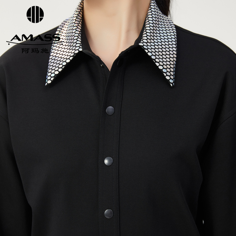 AMASS阿玛施 时尚单排扣收腰长袖连衣裙 5500463