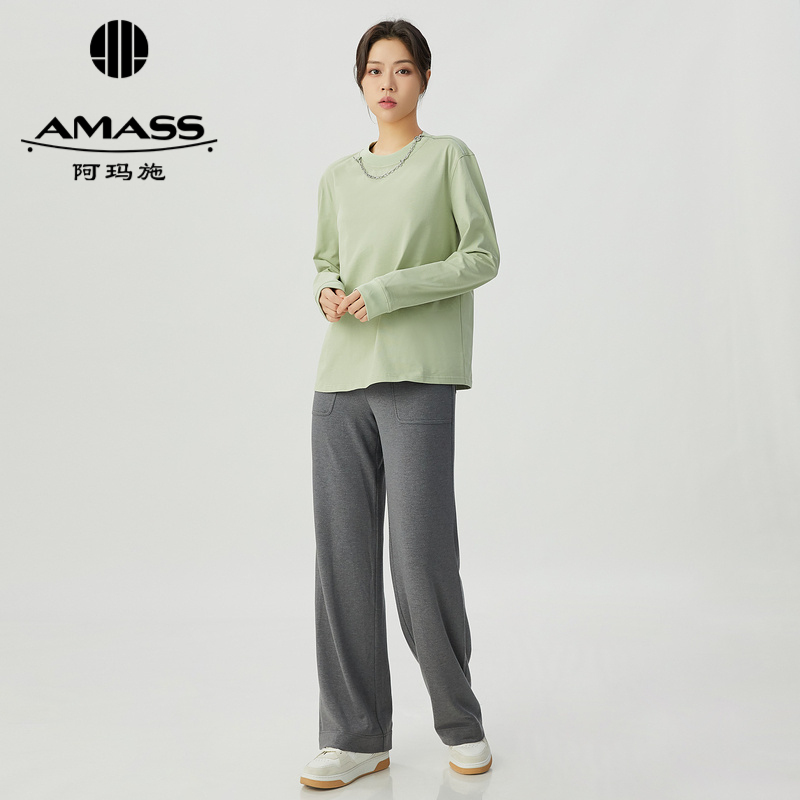 AMASS阿玛施 简约素面链条设计百搭圆领长袖纯T5300993