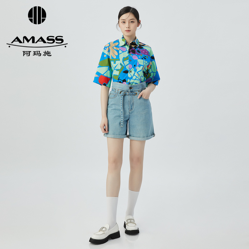 阿玛施AMASS 凉爽舒适慵懒廓形短袖衬衫5300960