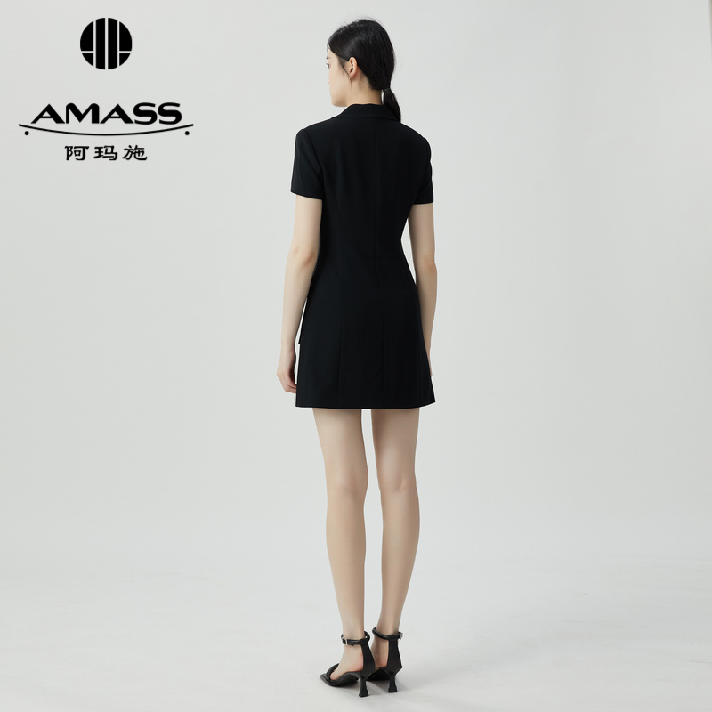 阿玛施AMASS V领窈窕身姿拉链短袖洋装5500540