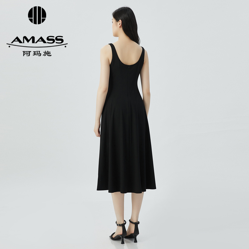 阿玛施AMASS 简约气质复古无袖收腰洋装5500546