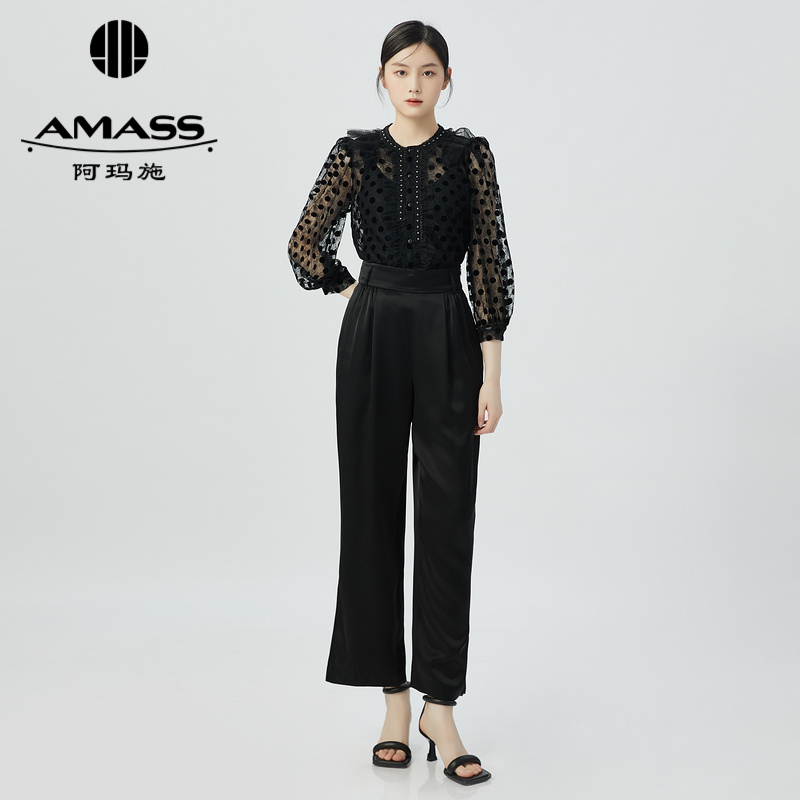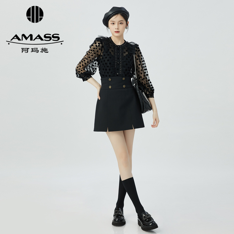 阿玛施AMASS 精致法式复古透视波点衬衫5300998