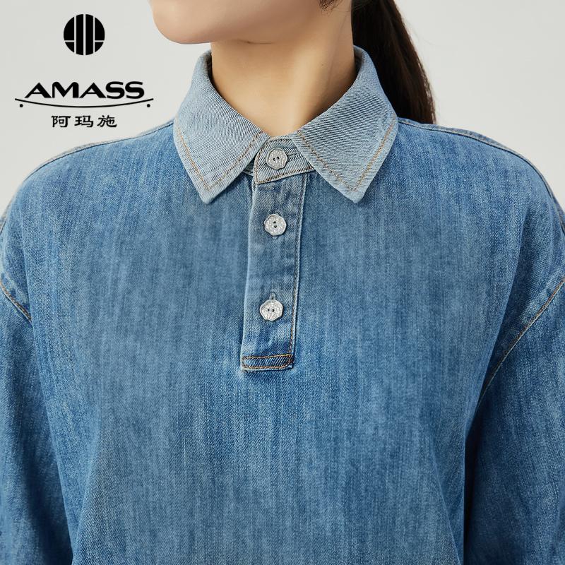 阿玛施AMASS海报款衣橱共享系列廓形水洗牛仔POLO短袖5301034
