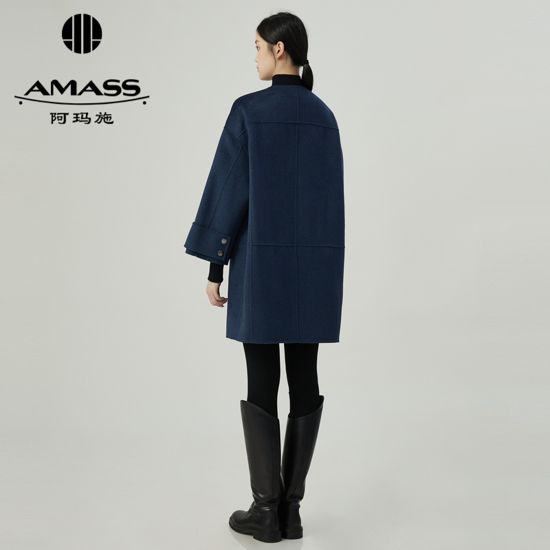 阿玛施AMASS圆领翻领两双茧型中长款羊毛双面呢外套5400770