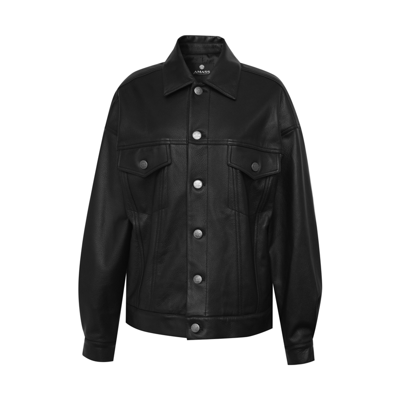 阿玛施AMASS时髦高级质感宽松宽松皮夹克女5400826
