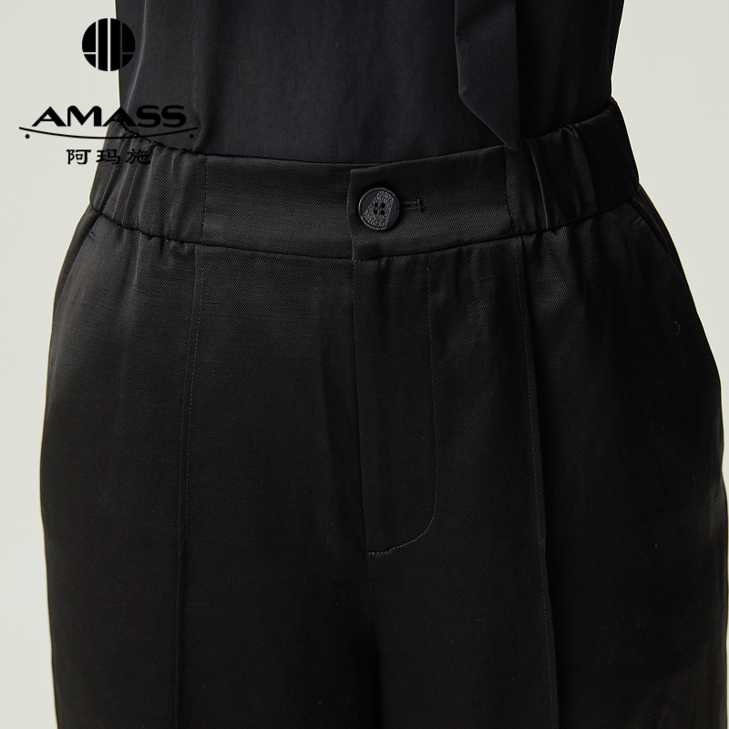 阿玛施AMASS 光泽感半圈松紧腰早春直筒休闲长裤5100565