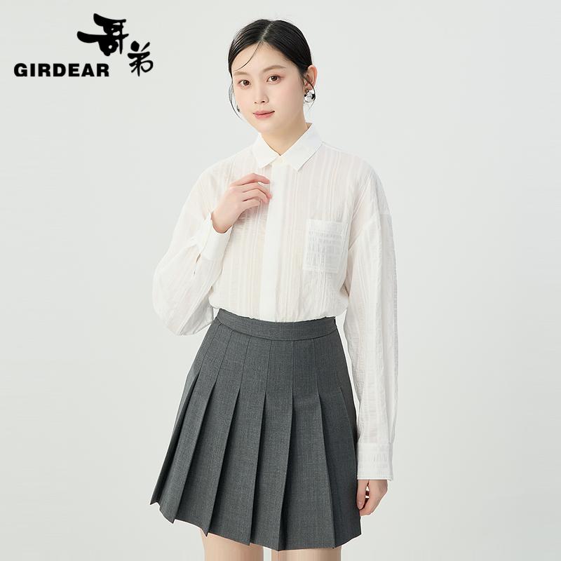 哥弟 百搭宽松小翻领衬衫1300989
