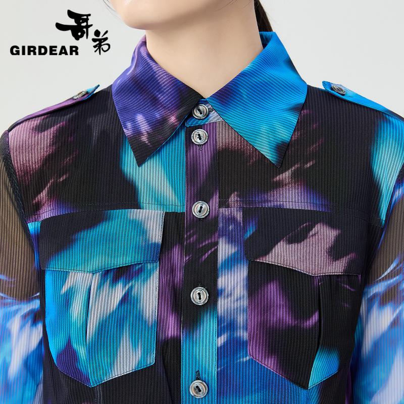 哥弟 夹克式丝网纱长袖衬衫1301009