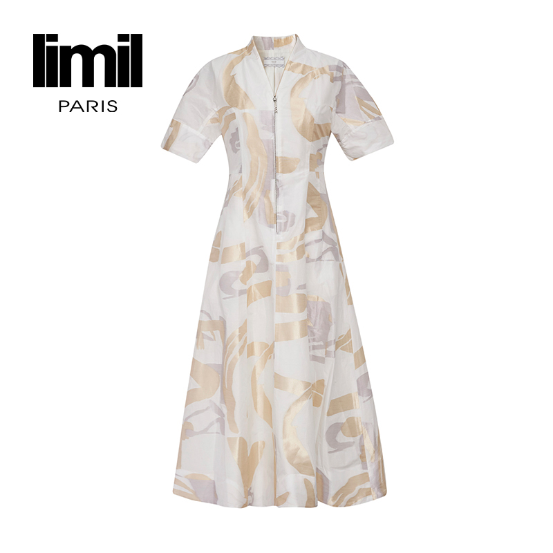 丽米儿limil 中式V领拉链伞摆洋装9500073