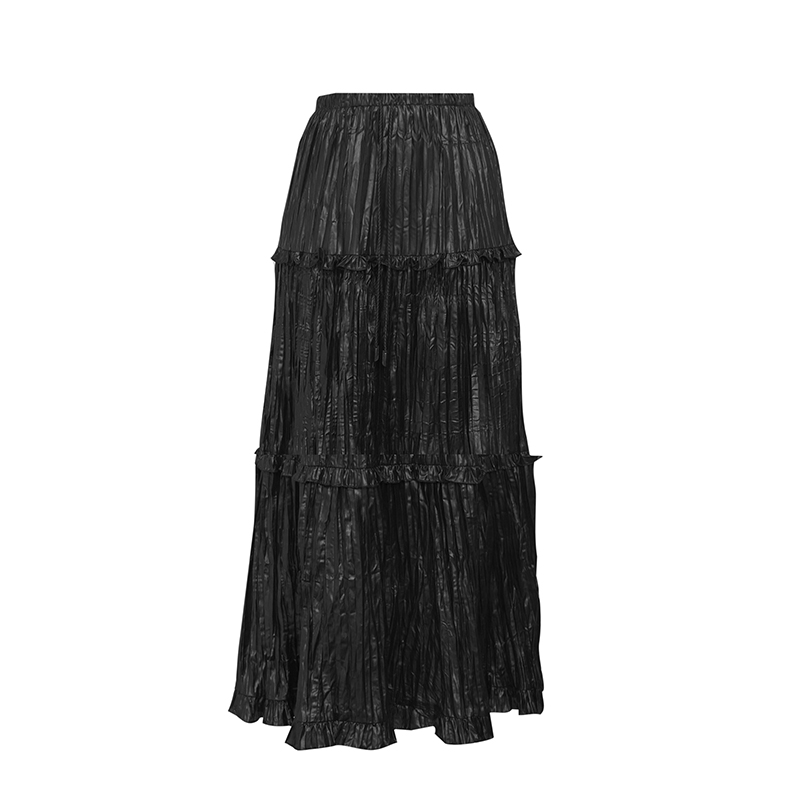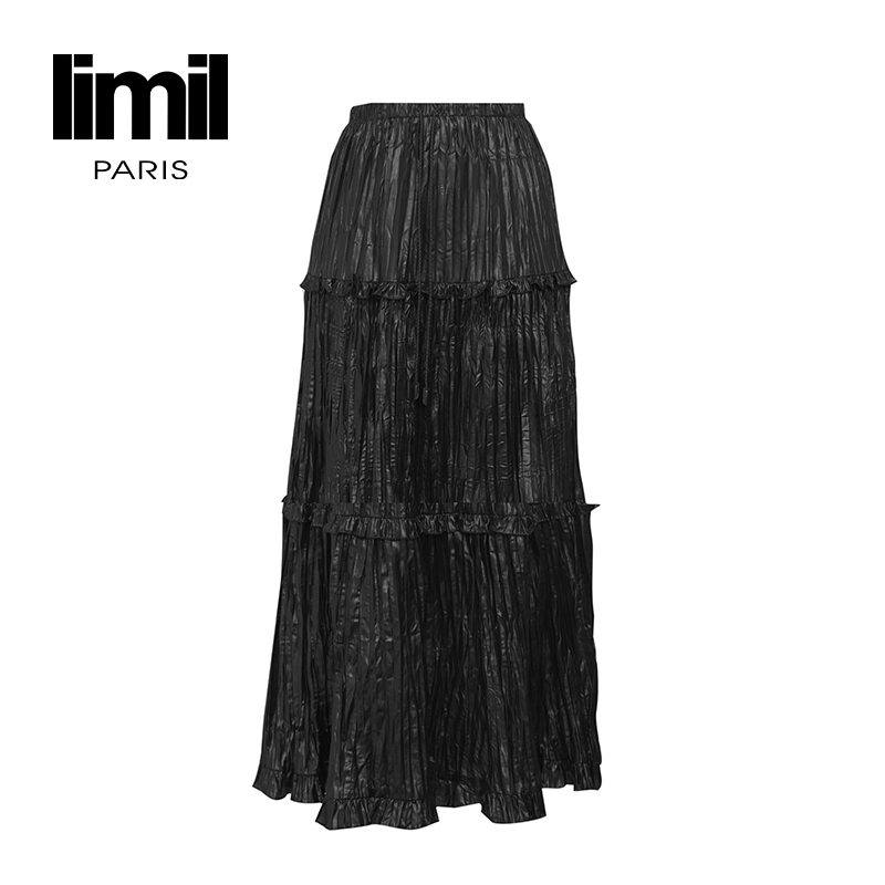 丽米儿limil 简约优雅质感涂层乱褶长裙9200074
