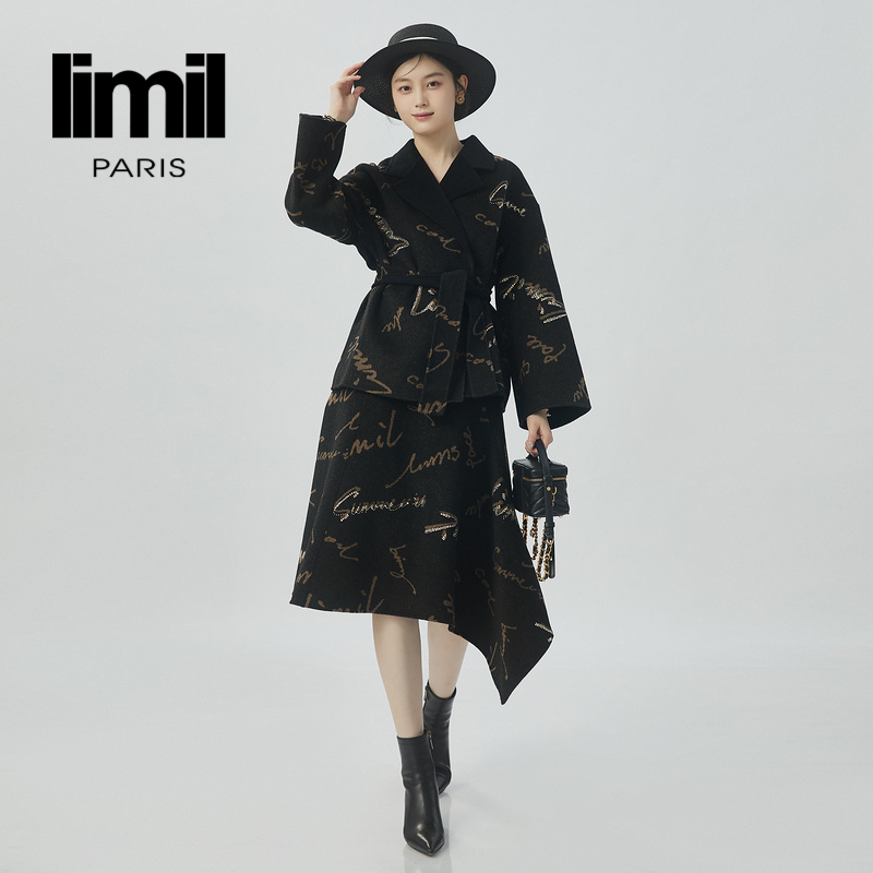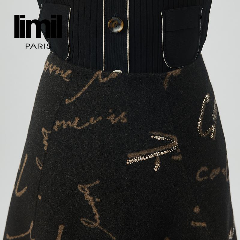 丽米儿limil 轻奢字母钻饰双面呢半身裙伞裙9200056