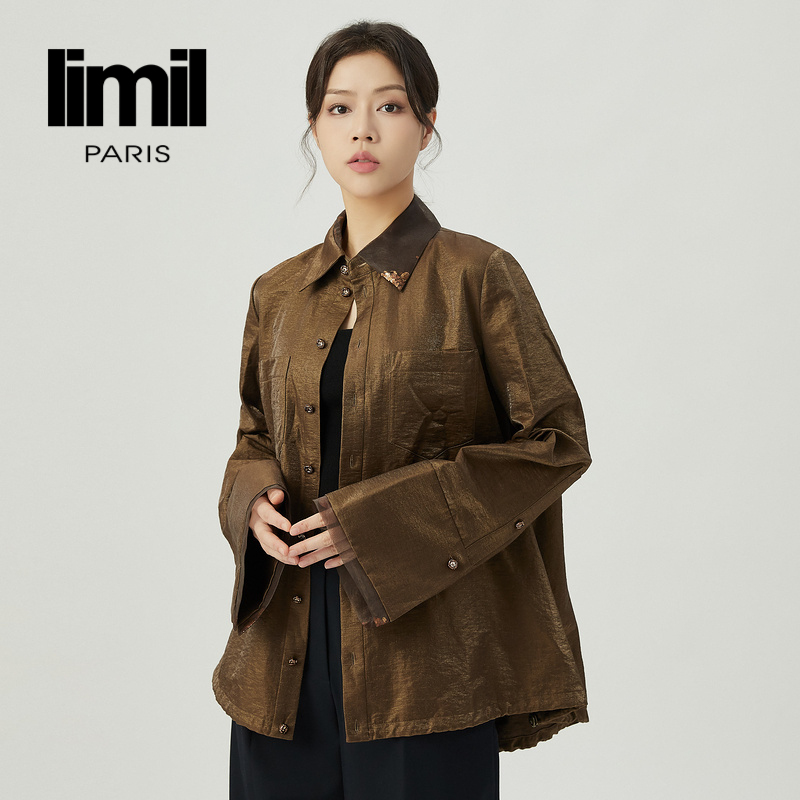 丽米儿limil 高级款尖领拼皮收腰修身款衬衫9300099
