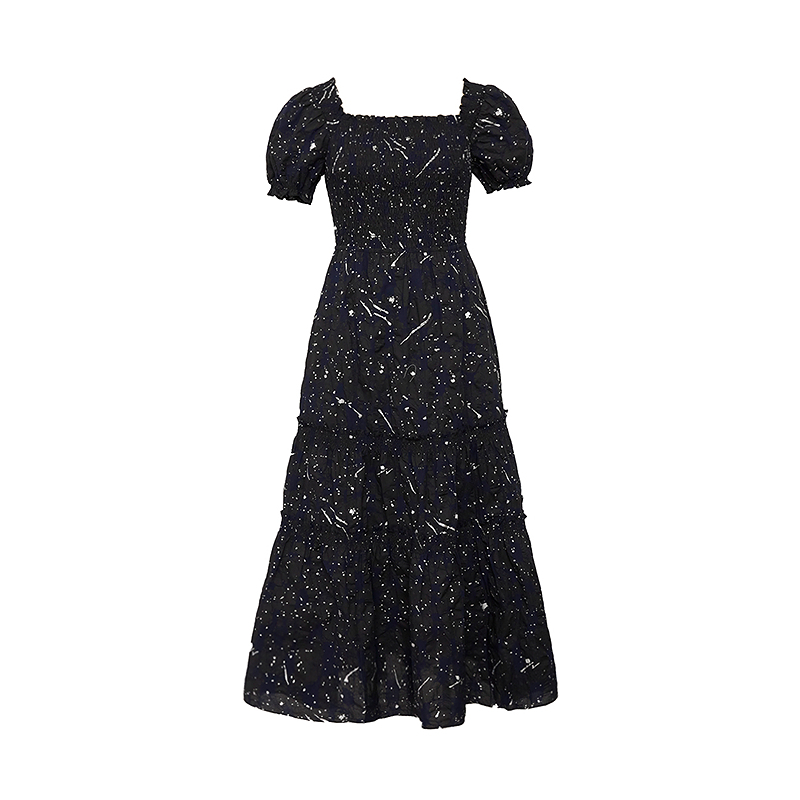 哥弟  精致立体纹理方领泡泡袖连衣裙150014